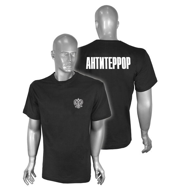 Футболка с надп. белой краской черн. Антитеррор (герб РФ)