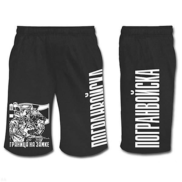 Шорты с надп. белой краской черн. Погранвойска (Граница на замке)