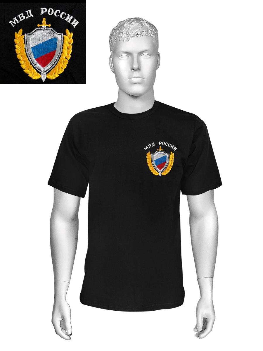 Футболка с вышивкой на груди МВД России (щит) черн.