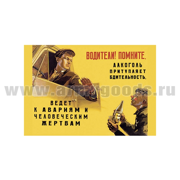 Магнит виниловый (гибкий) (советский плакат) Водители! Помните, алкоголь притупляет бдительность