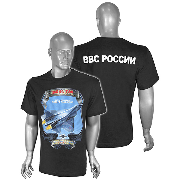Футболка с рис краской ПАК ФА (Т-50) истребитель пятого поколения (ВВС России) черная