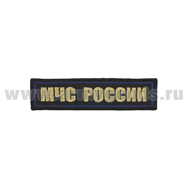 Нашивка на грудь тканая МЧС России (золотые буквы, синий кант)