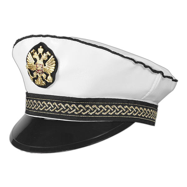 Фуражка сувенирная капитанка белая с белым верхом и мет. орлом (кожзам)
