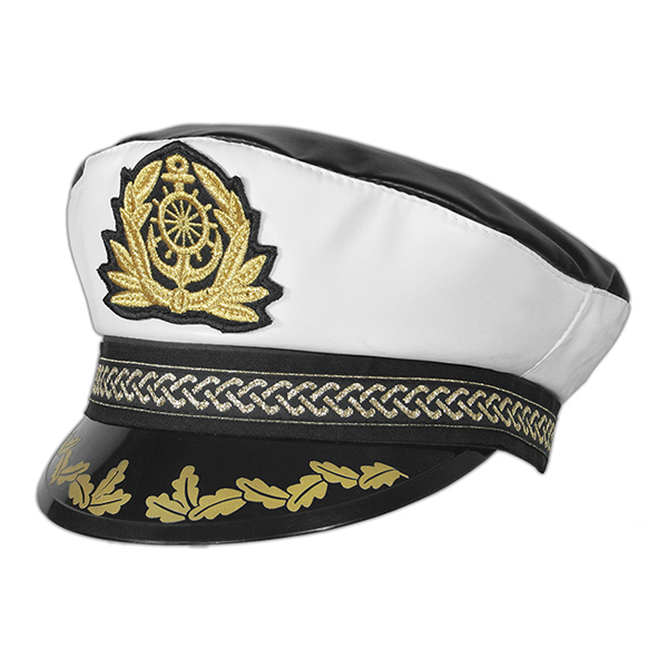 Фуражка сувенирная капитанка белая с черным верхом (штурвал с якорем) (кожзам)