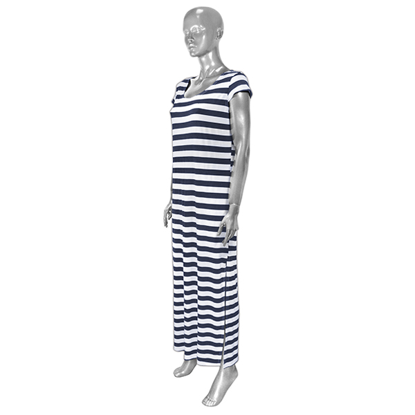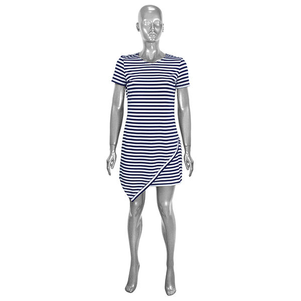 Платье женское белое в синюю полоску (короткое с косым подолом)