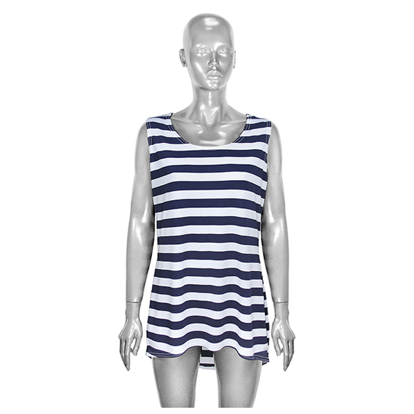 Туника женская с вырезами на плечах (белая в синюю полоску)