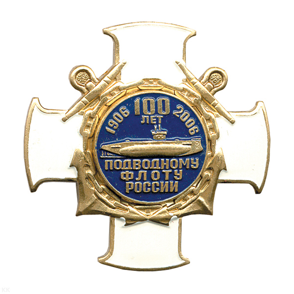 Значок мет. 100 лет подводному флоту России (бел. крест) лат.