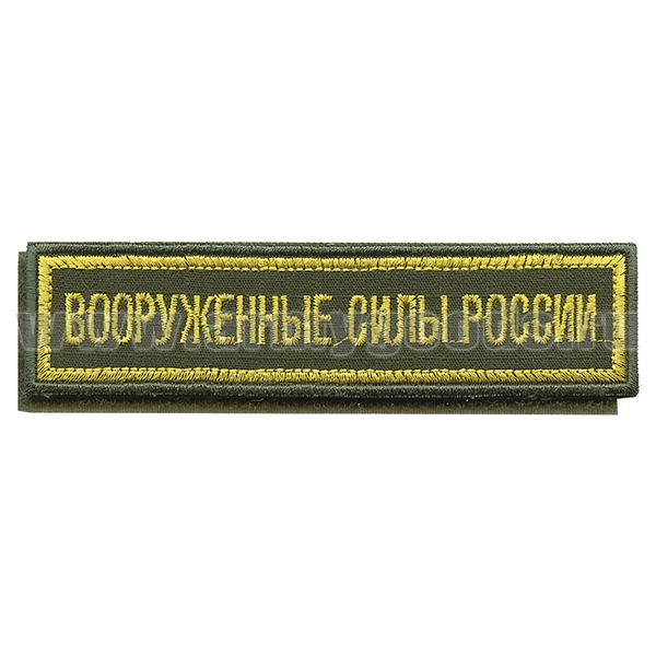 Нашивка на грудь вышит. Вооруженные силы России (125x25 мм) (оливковый фон, ткань Rip-Stop) на липучке