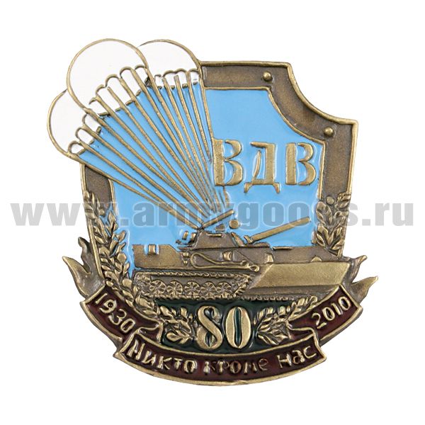 Значок мет. 80 лет ВДВ 1930-2010 Никто кроме нас (щит с БМП на 3 парашютах)