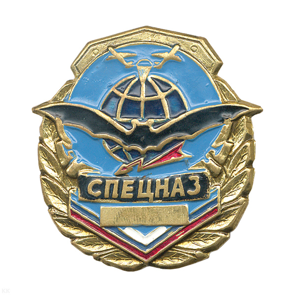 Значок мет. Спецназ (серия орел с парашютом, крылья в стороны с названиями дивизий ВДВ)