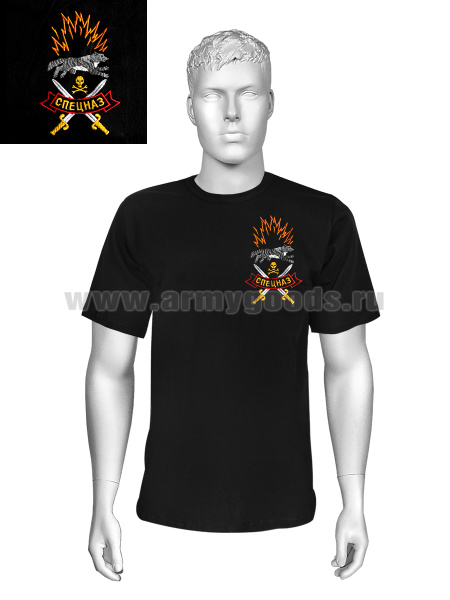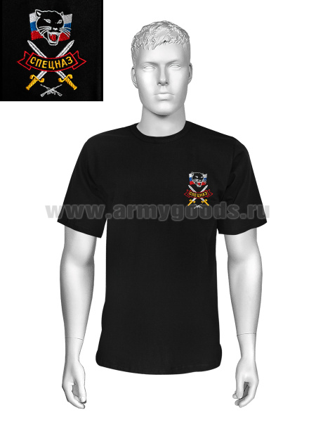 Футболка с вышивкой на груди Спецназ (пантера) черн.