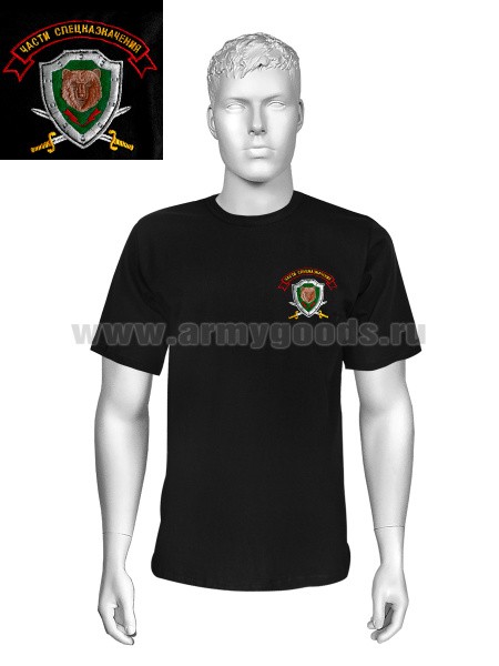 Футболка с вышивкой на груди Части спецназначения (медведь на зеленом щите) черн.