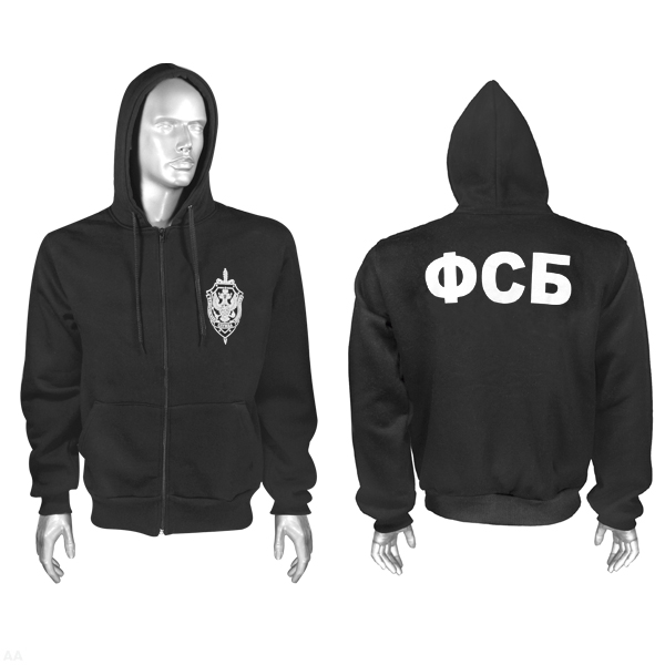 Толстовка на молнии черная ФСБ (70 % х/б, 30% полиэстер)