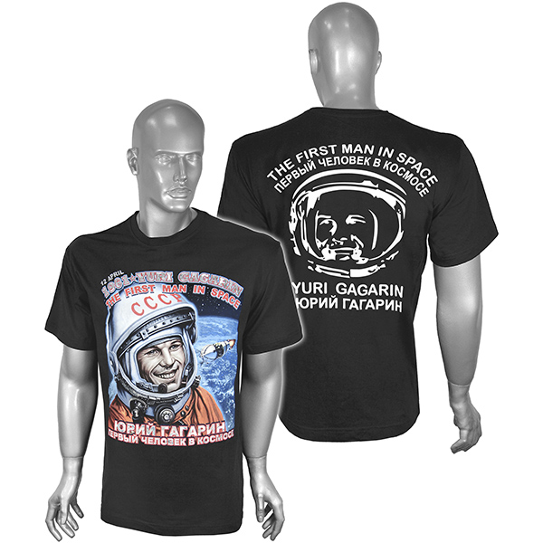 Главная-01 ОДЕЖДА-Футболка с рис краской Юрий Гагарин первый человек в космосе (черная)