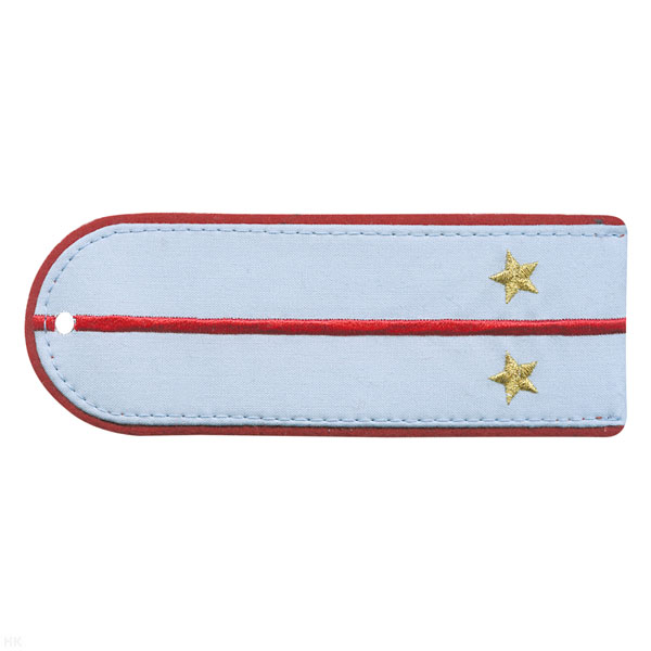 Погоны «машинная вышивка» из рубаш. ткани Полиция бледно-голубые с 1 вышит. красн. просв. с вышит. звездами (лейтенант)