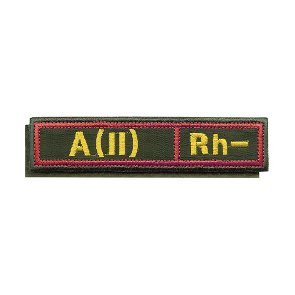Нашивка на грудь вышит. Гр. кр. A (II) отрицат. (оливковый фон, красный кант, ткань Rip-Stop) на костюм офисный (125x25 мм) на липучке