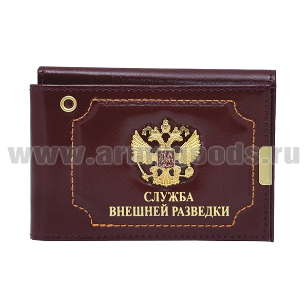 Обложка-книжка кожаная под автодокументы с мет. накладкой Служба внешней разведки