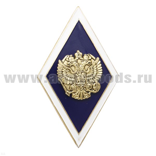 Значок мет. Ромб Высшее образование синий с белым кантом (латунь, хол.эм. с накладным орлом РФ)