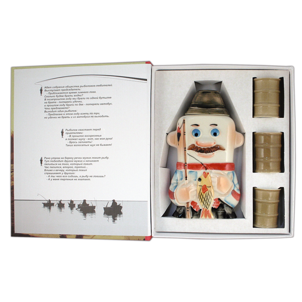 Фляга фарф. (0,25 л) + 3 рюмки в книжке-обманке Рыбак
