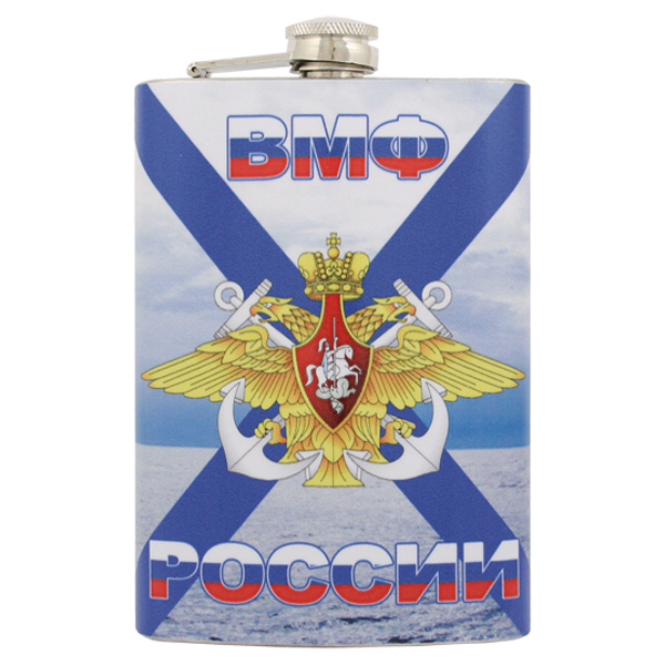 Фляга нерж/ст с цв.рис. ВМФ России / С нами Бог и андреевский флаг