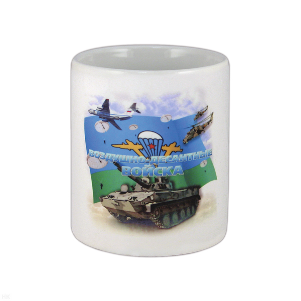 Главная-28 СУВЕНИРЫ, ПОДАРКИ-Кружка фарф. (0,3 л) ВДВ (техника на фоне флага ВДВ СССР)