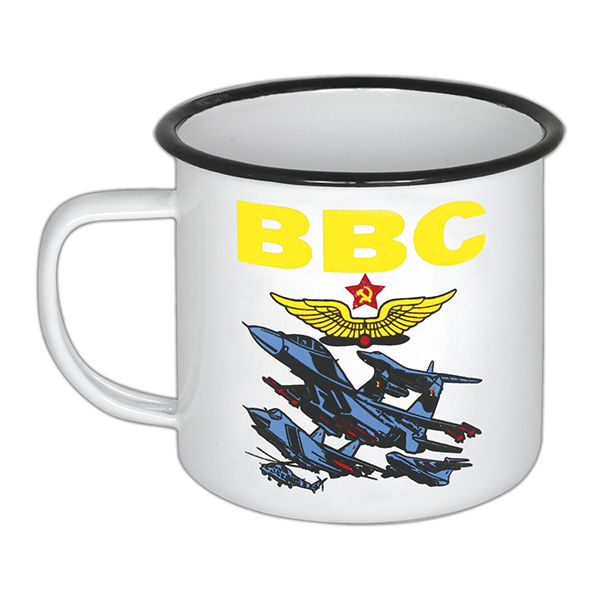 Кружка эмалированная 0,5 л с рис. (деколь) ВВС (истребители)