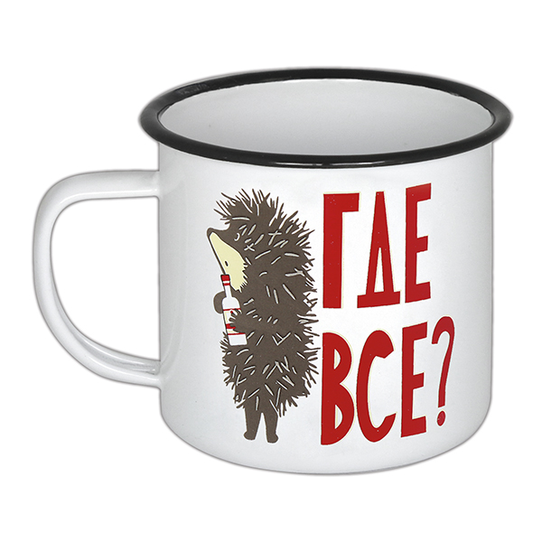 Кружка эмалированная 0,5 л с рис. (деколь) Где все? (ежик)