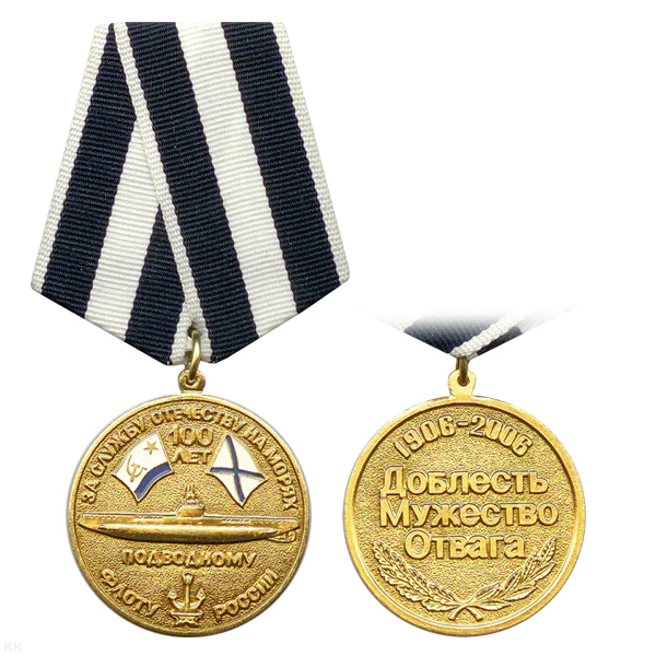 Медаль 100 лет подводным силам ВМФ (За службу на подводных лодках Родина, Честь, Мужество 1906-2006)