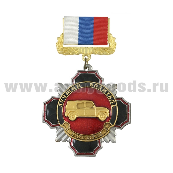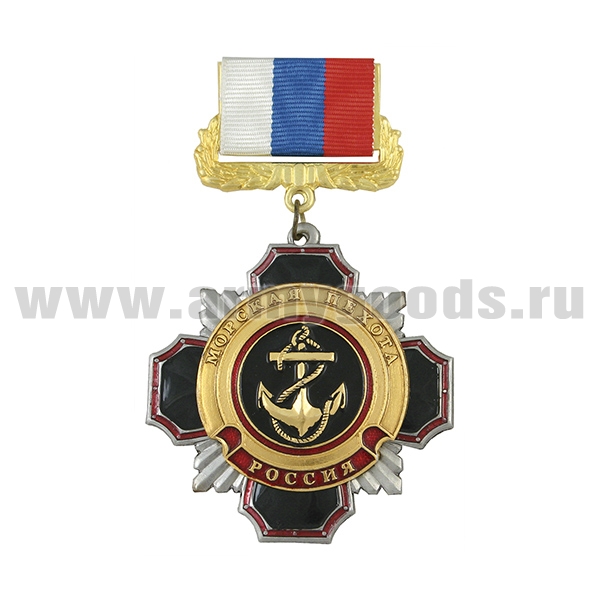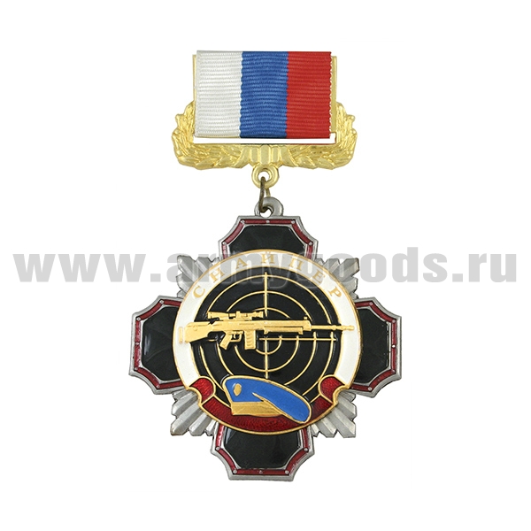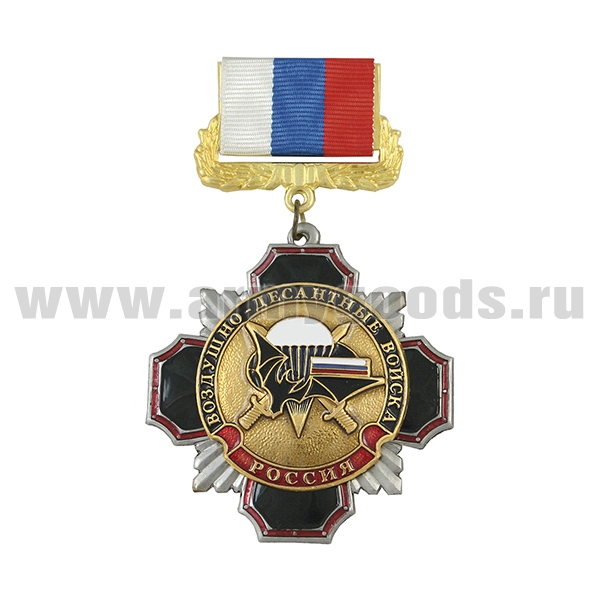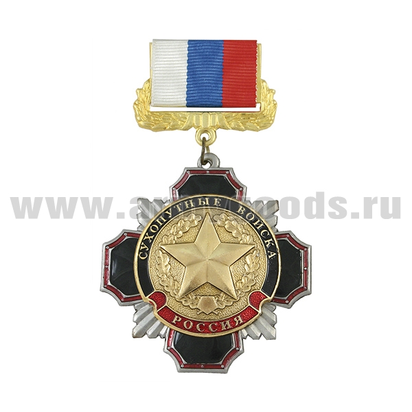 Медаль Стальной черн. крест с красным кантом ВВ (кулак с автоматом на звезде) (на планке - лента РФ)