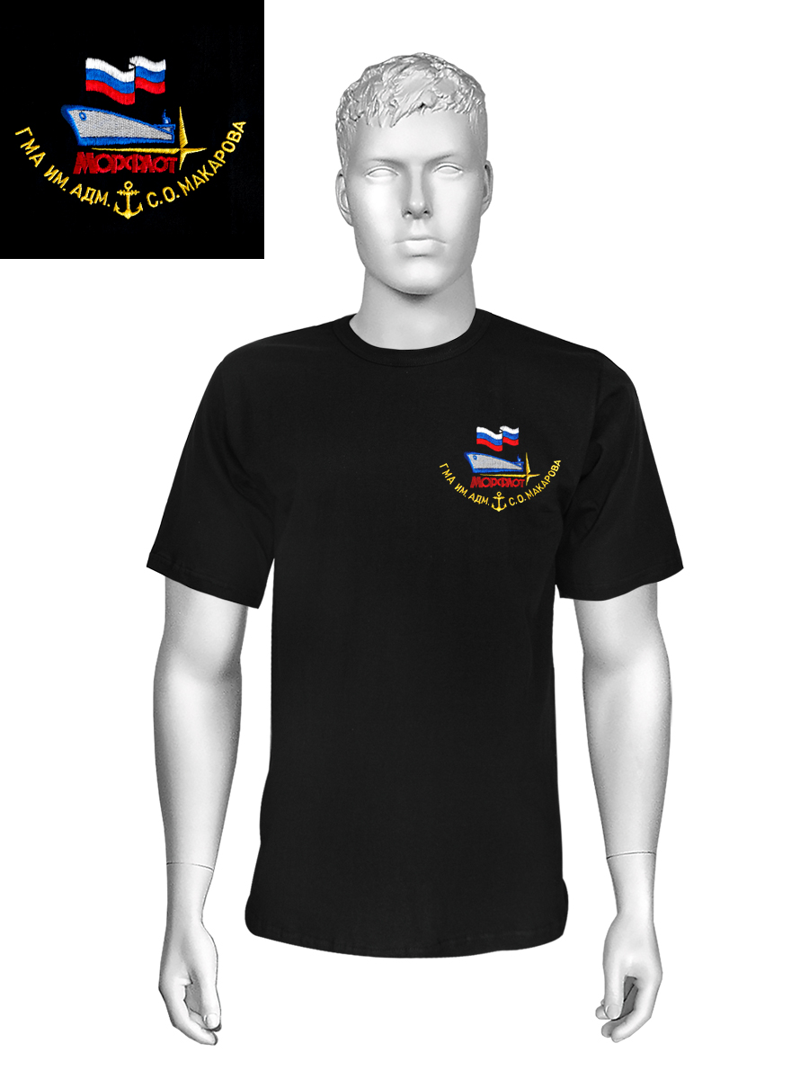 Футболка с вышивкой на груди ГМА им. адм. С.О. Макарова, черная