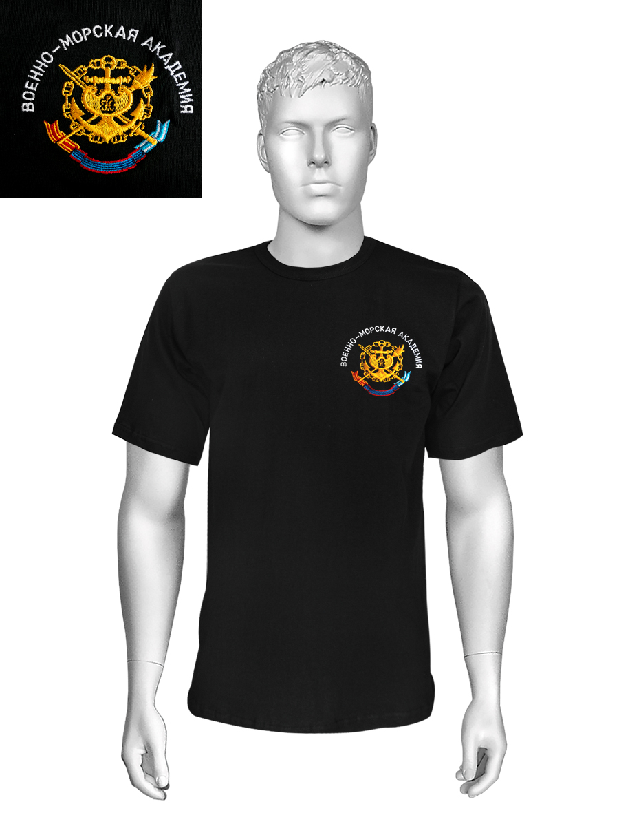 Футболка с вышивкой на груди Военно-морская академия, черная