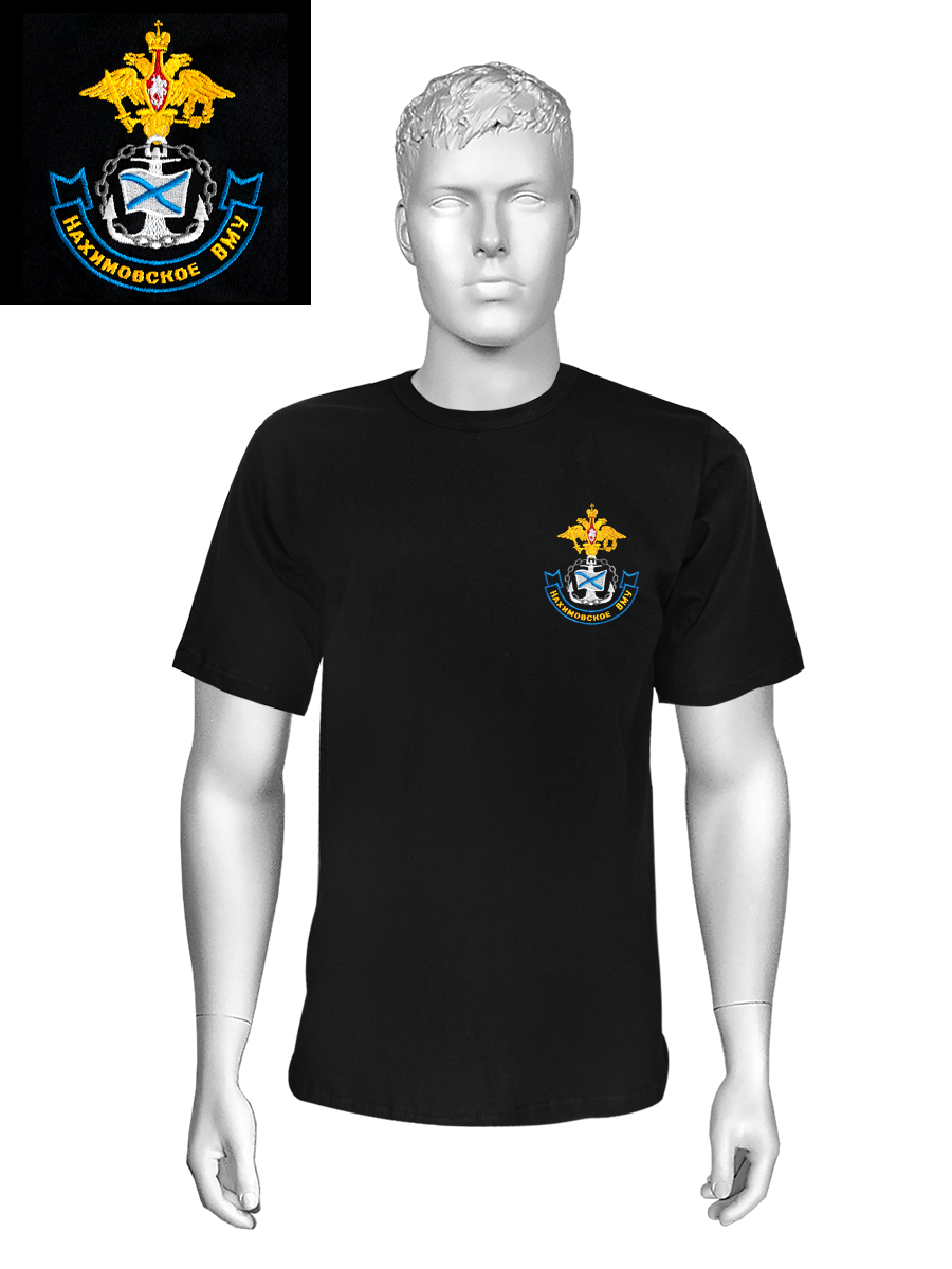 Футболка с вышивкой на груди Нахимовское ВМУ, черная