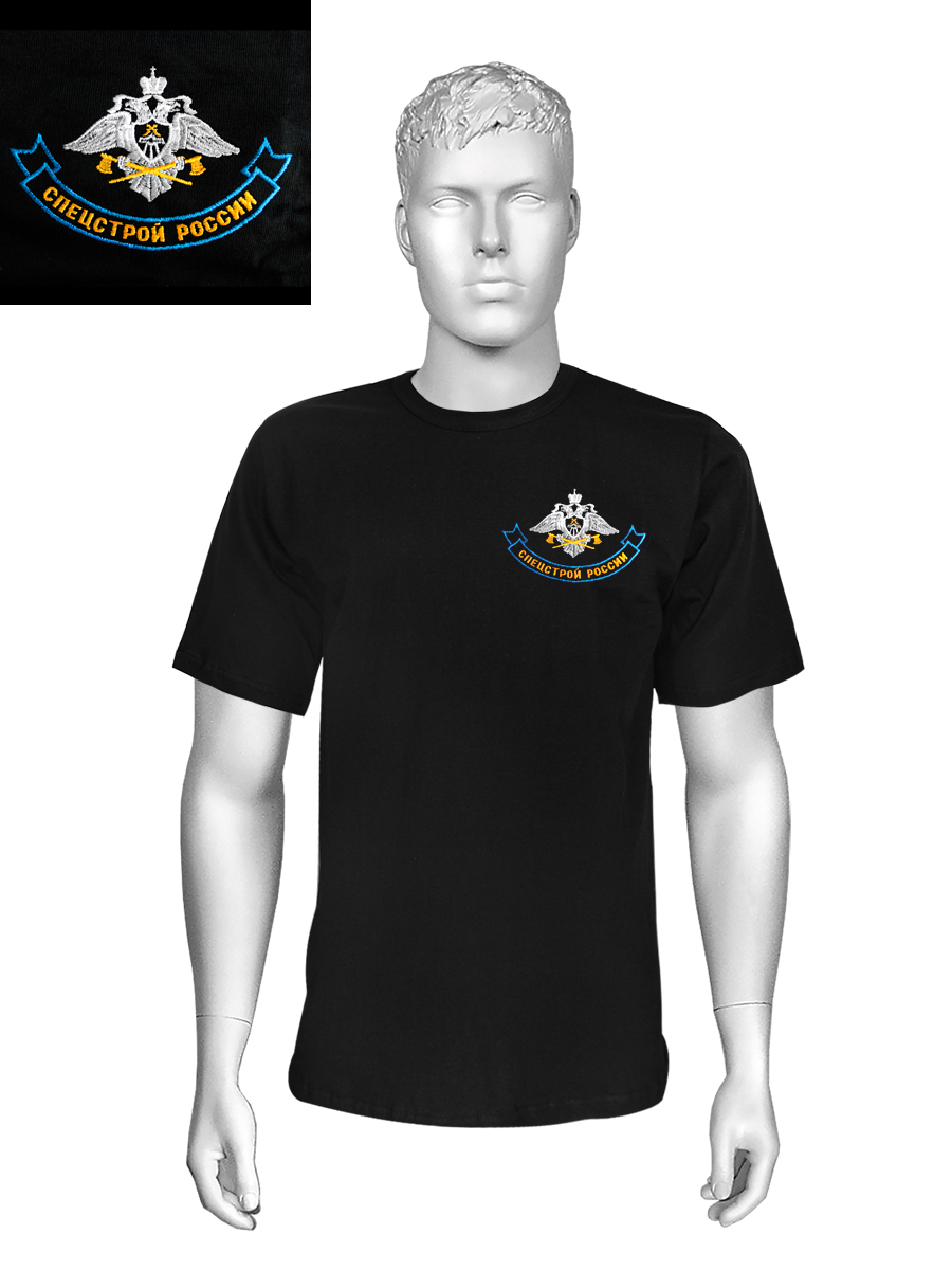 Футболка с вышивкой на груди Спецстрой России, черн.