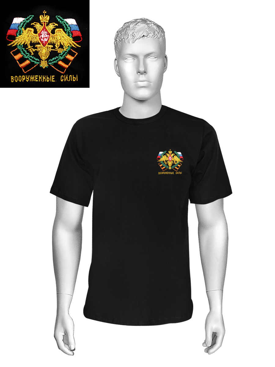 Футболка с вышивкой на груди Вооруженные силы (орел на банте) черн.