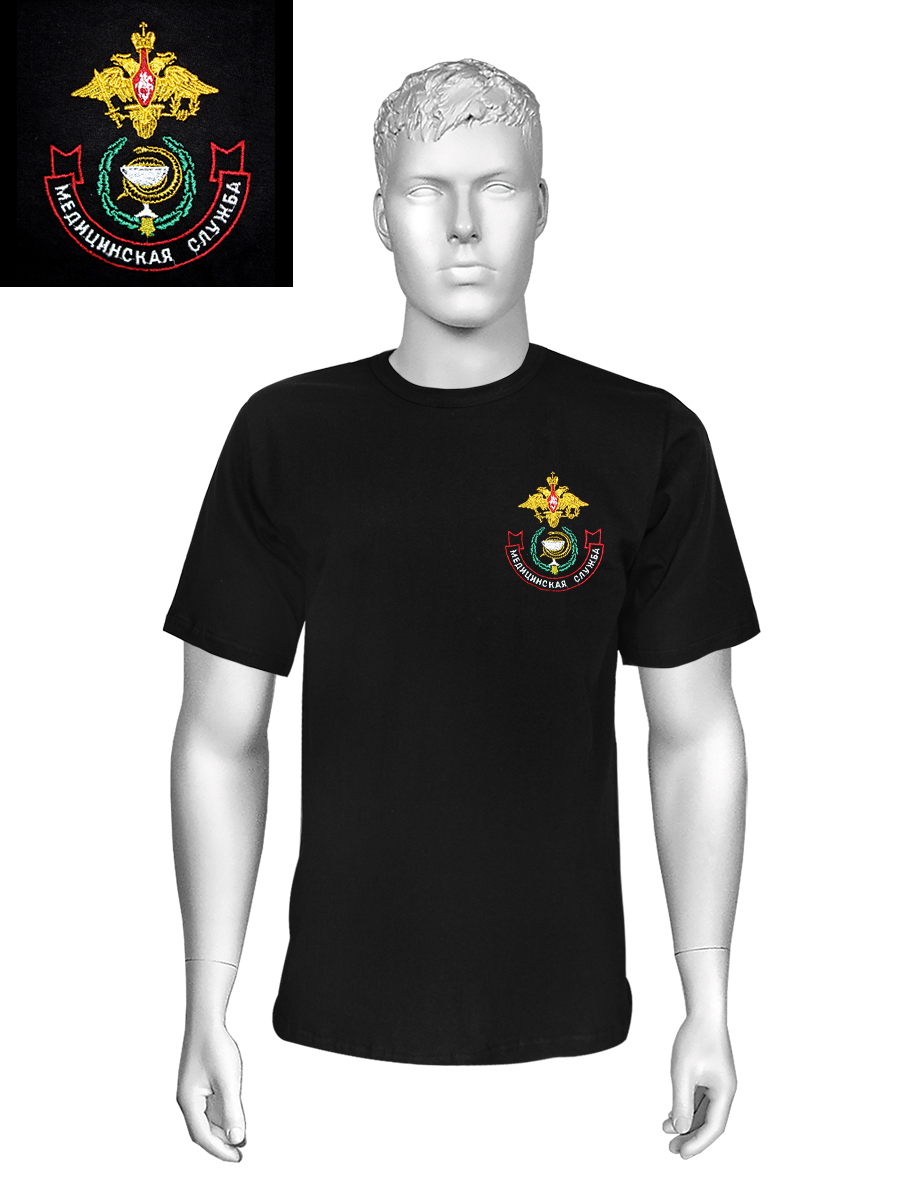 Футболка с вышивкой на груди Медицинская служба, черн.