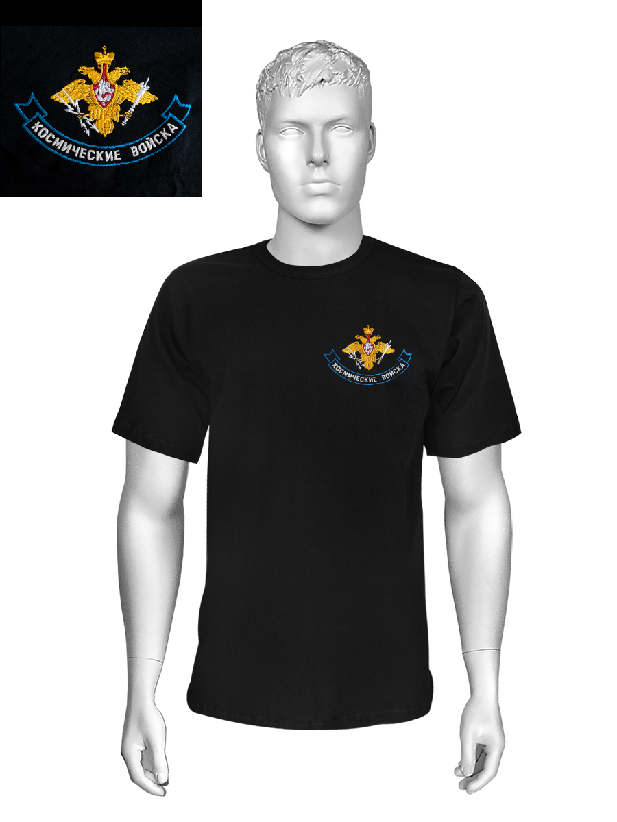 Футболка с вышивкой на груди Космические войска (орел) черн.