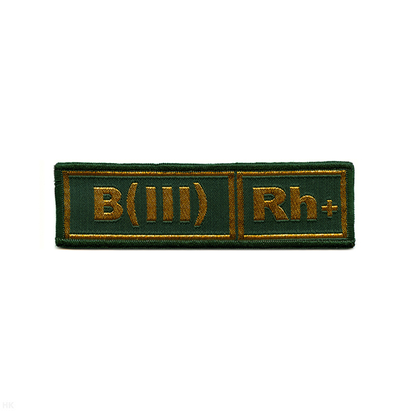 Нашивка на грудь тканая Гр. кр. B (III) отрицат. (зел. фон)